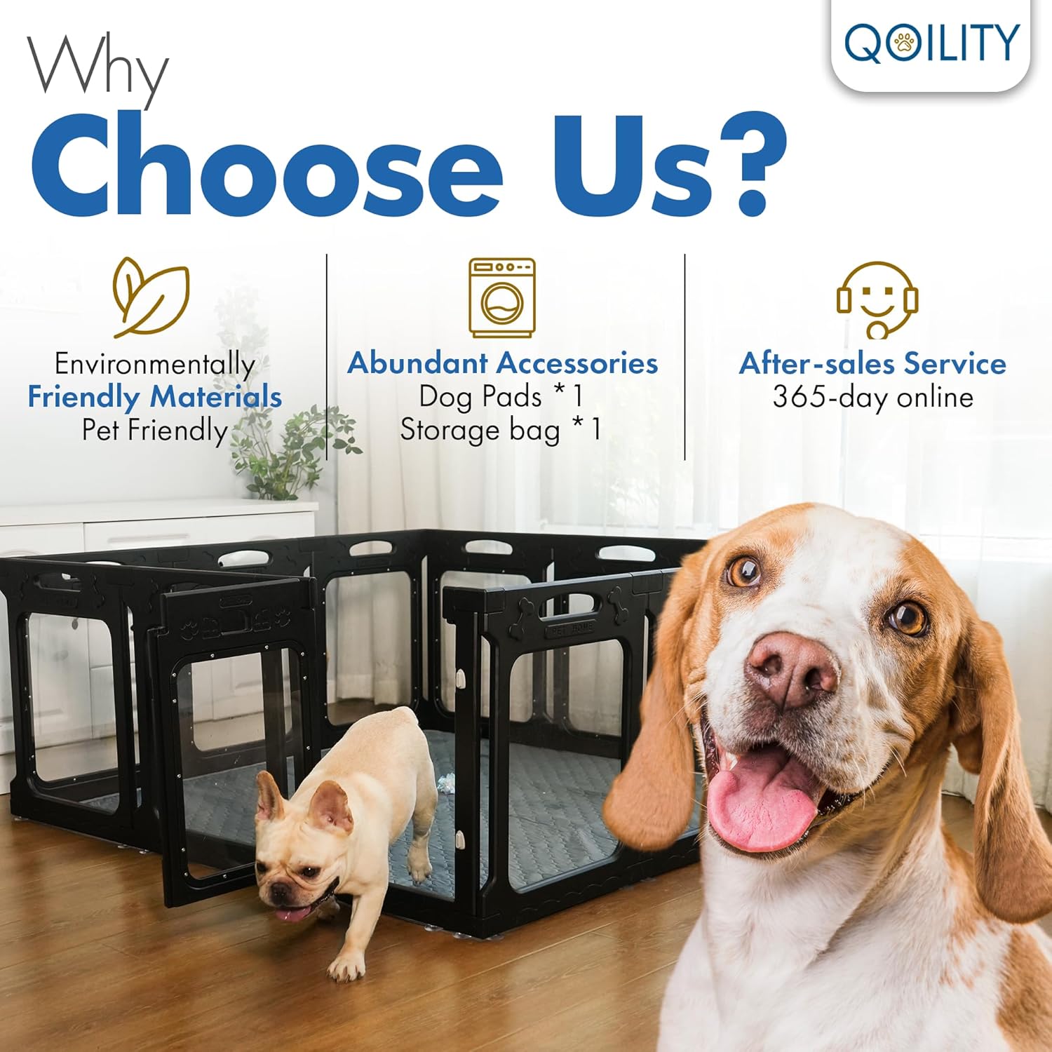 Clear Dog Playpen Indoor, Effectively Relieves Pet Anxiety, Suitable for Most Dogs, Black