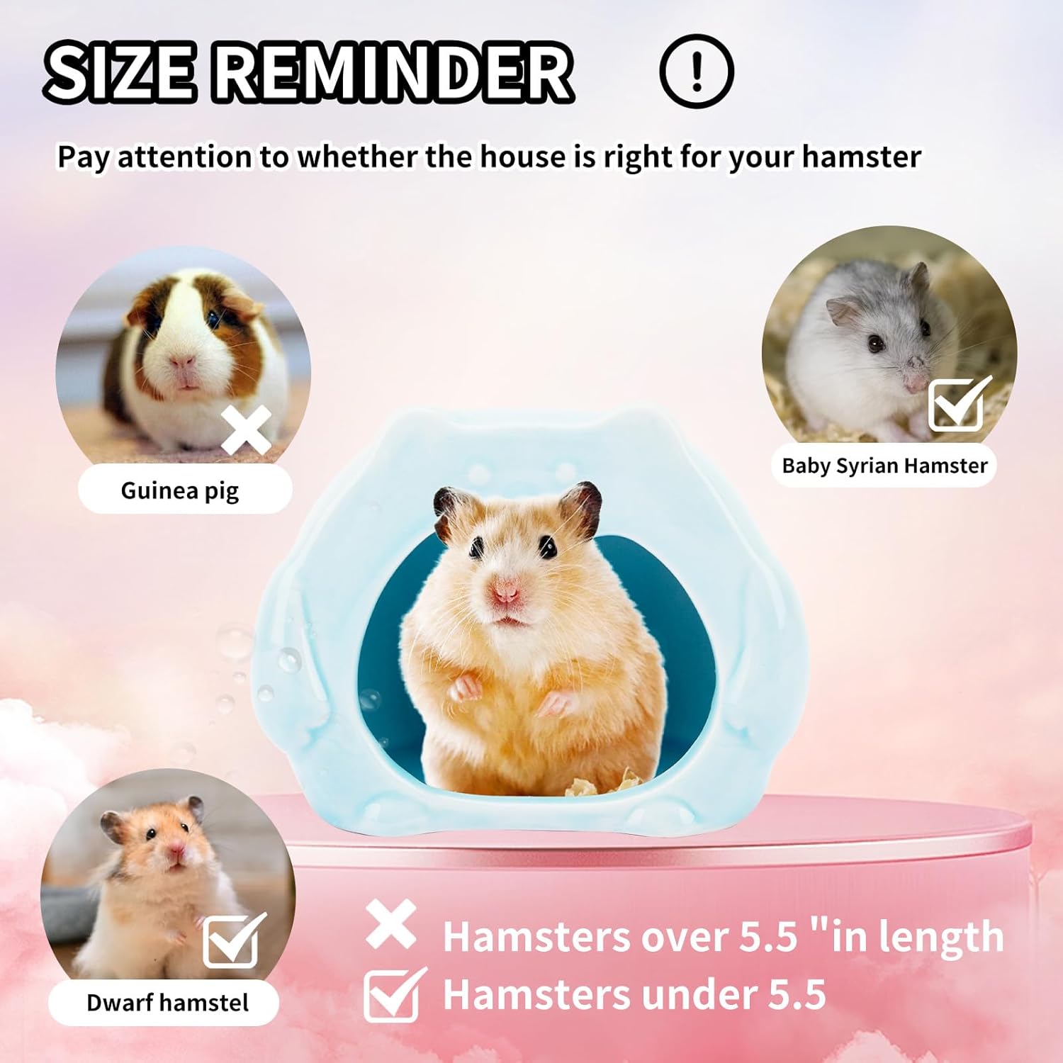 Bear-Shaped Hamster Hideout & Food Bowl Set - Ceramic Habitat for Syrian Dwarf Hamsters, Mice, Gerbils - All-Season Use, Chew-Proof Ceramic House and Feeding Dish for Small Pets(Blue)