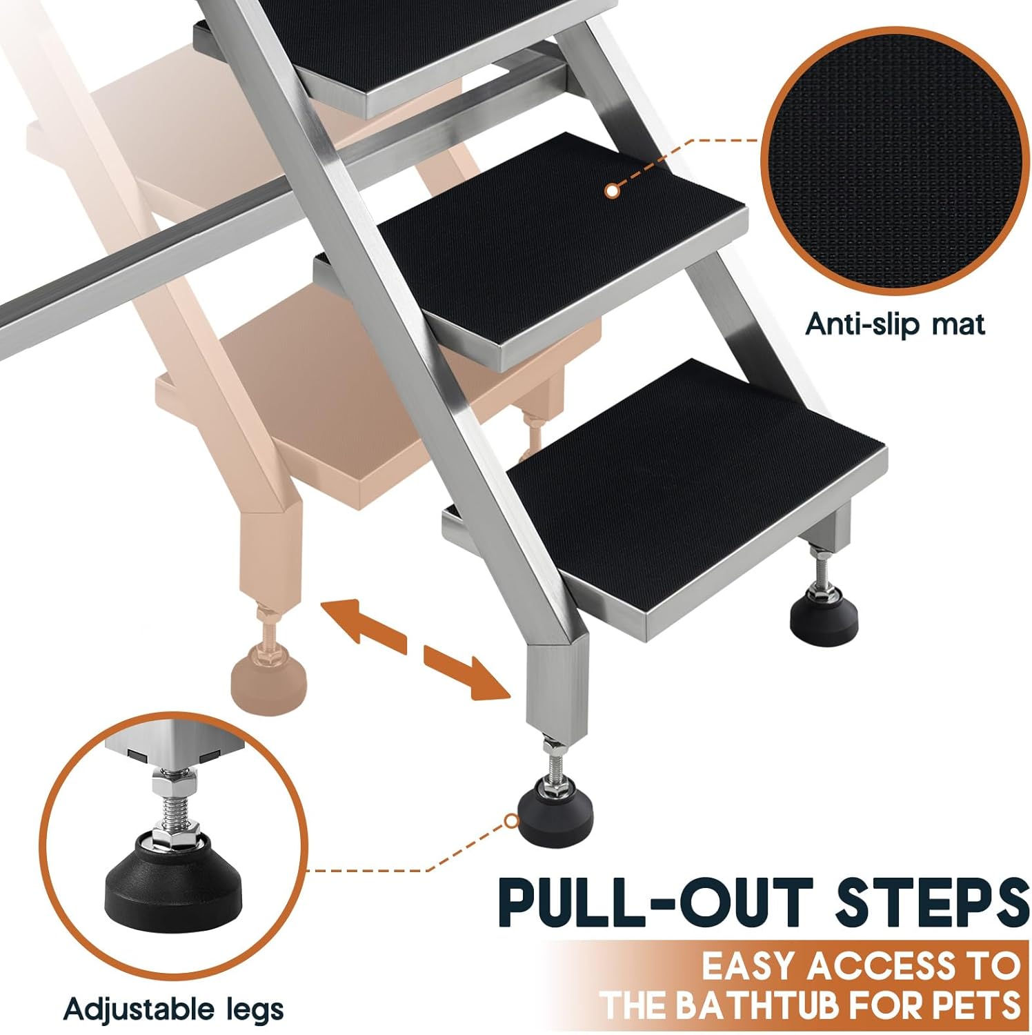 • Safe & Convenient Access: Designed with non-slip steps for stable entry, this pet bathtub ensures pets can move in and out safely. The swing-out door adds extra ease for both pet owners and groomers.