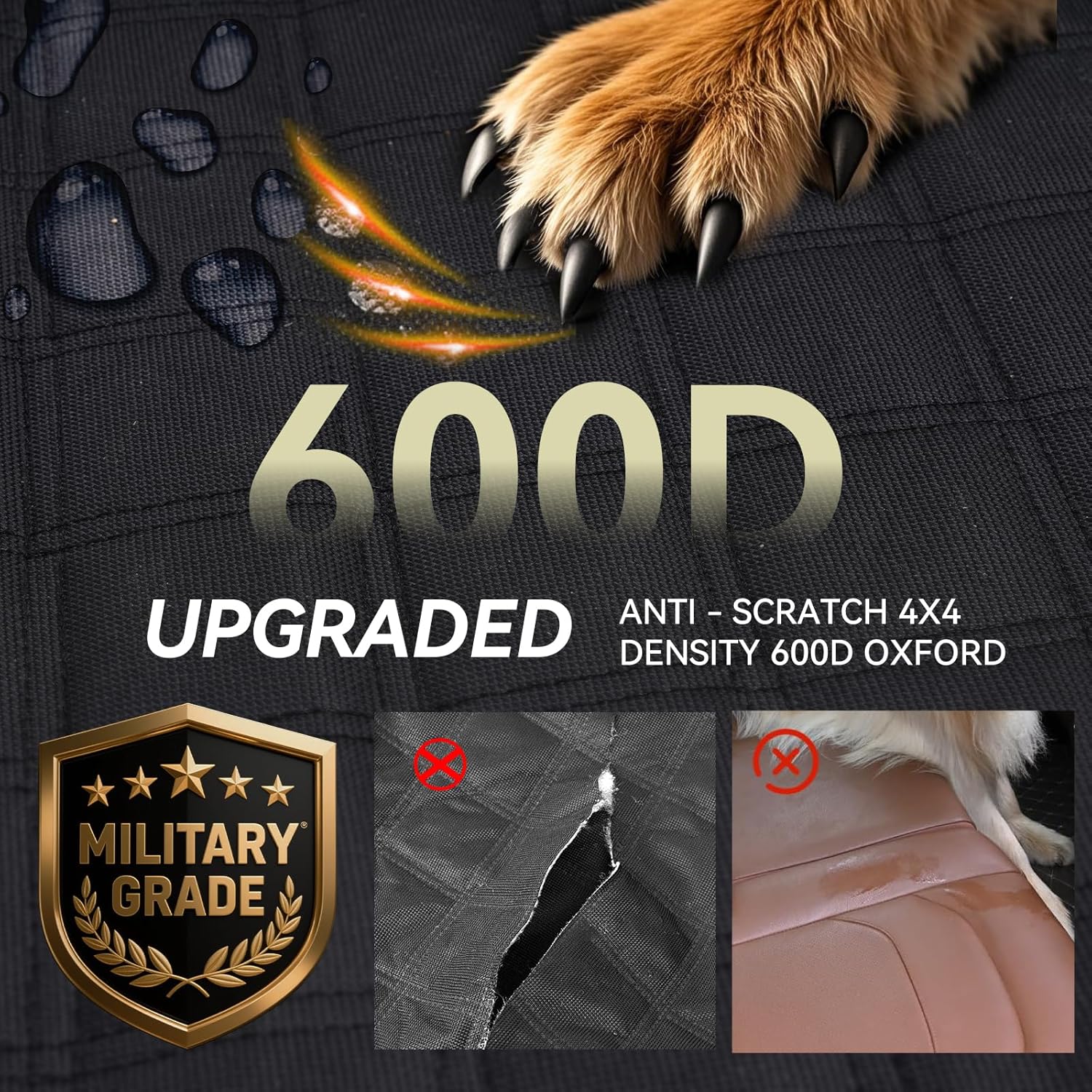 - Waterproof & Anti-Slip Design:Crafted using an advanced heat-pressing process with 7 layers of materials, including 600D Oxford fabric and 210D Oxford fabric, Our back seat cover provides superior waterproof protection. The anti-slip bottom ensures your dog won’t slide off during the ride.