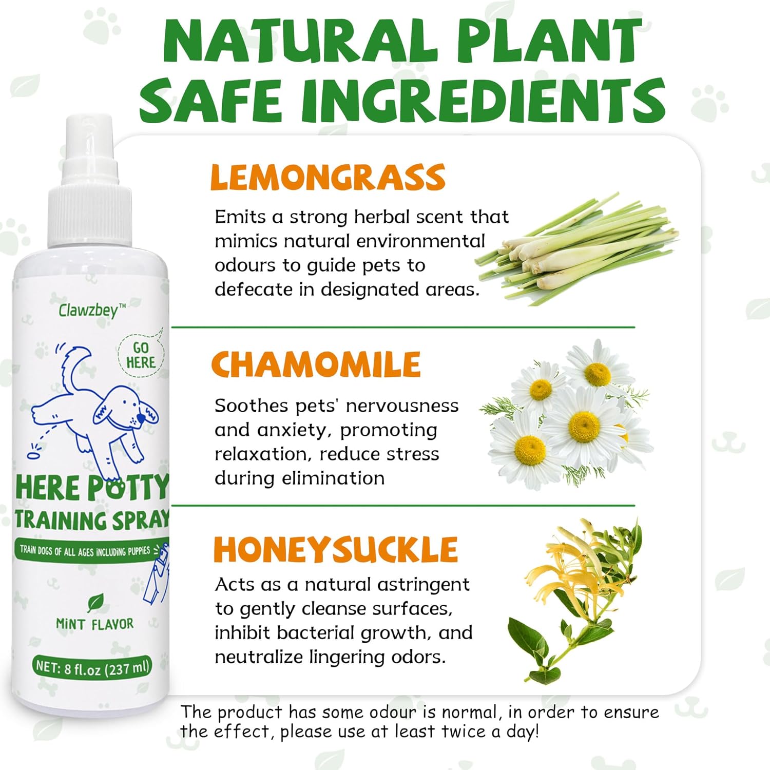 - NATURAL & SAFE: This product is synthesized from natural botanical ingredients and contains essential oils that mimic pets' pesky plant odors and familiar grassy scents, respectively, making it safe and friendly for pets.