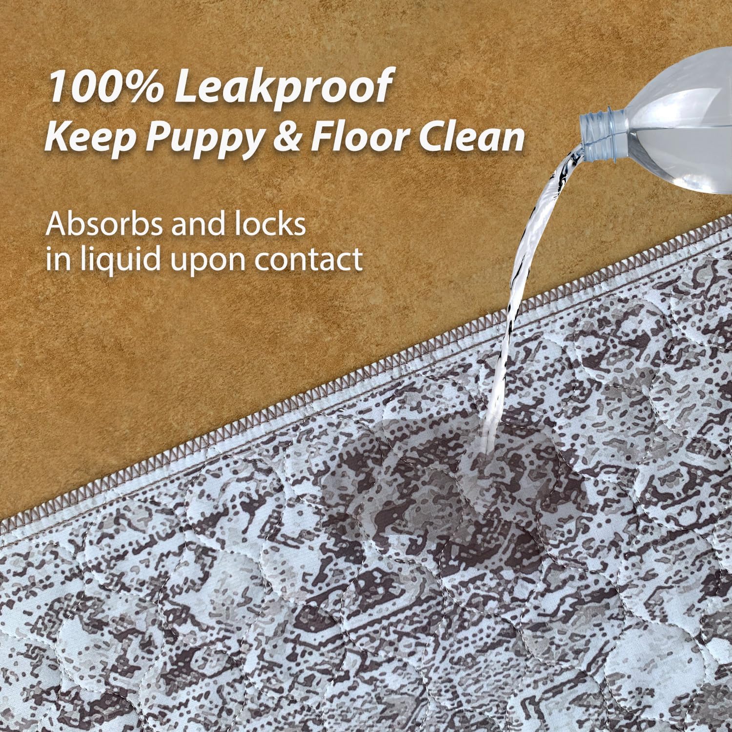 nunubaby Washable Pee Pads for Dogs, Stylish, Non-Slip and Leak-Proof Pee Pads. Reusable Potty Pads for Dogs for Crates and Floors.(Brown/Geo, 24" x48")