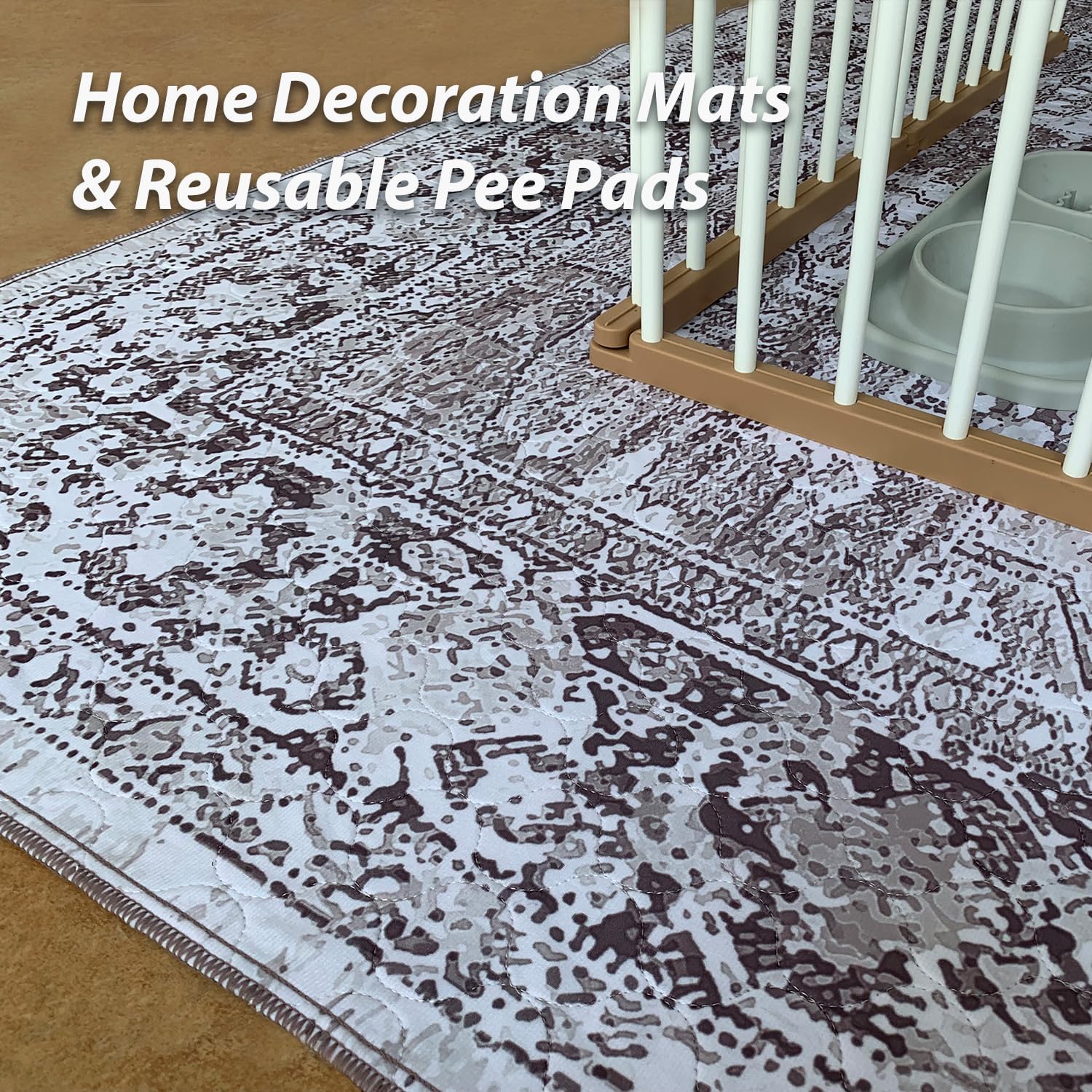 nunubaby Washable Pee Pads for Dogs, Stylish, Non-Slip and Leak-Proof Pee Pads. Reusable Potty Pads for Dogs for Crates and Floors.(Brown/Geo, 24" x36")