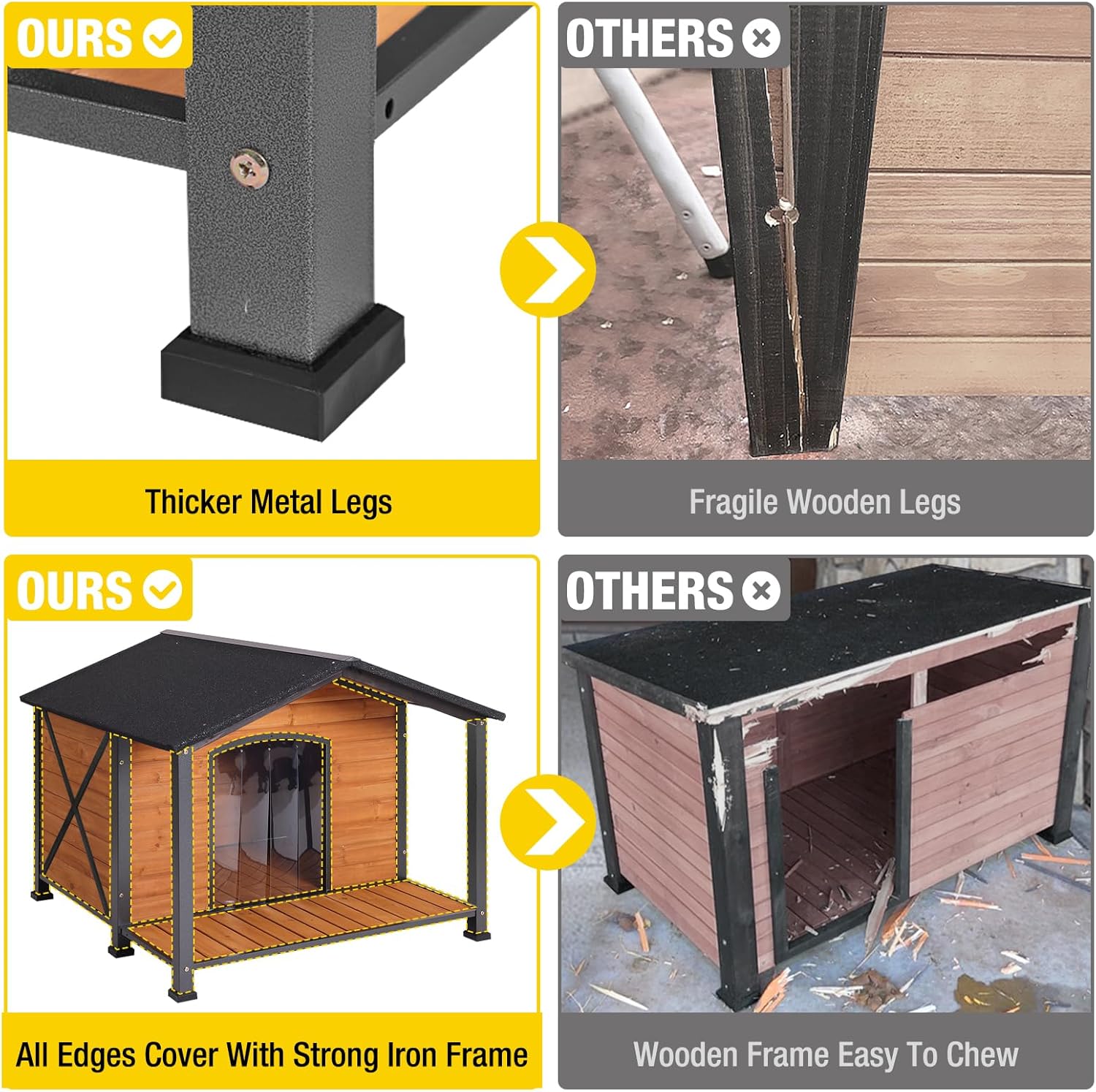 • Sturdy Wood And Metal Structure: Large dog house reinforced with a metal frame and thick solid wood panels for enhanced durability and long-term outdoor use