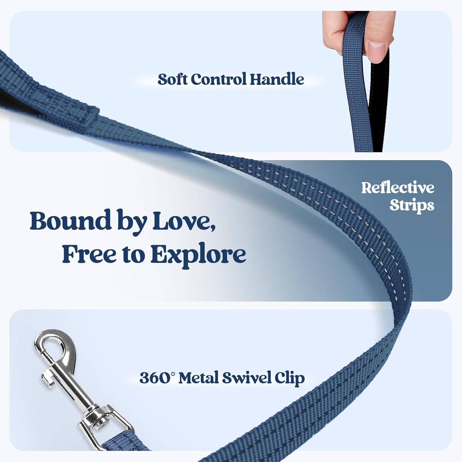 - Dog Harness with Leash SetοΌThe color-matching harness and leash with reflective bands make it fashion and visible for pet outing. The leash is 5.15ft in length, with an anti-tangling clip and a palm-friendly handle