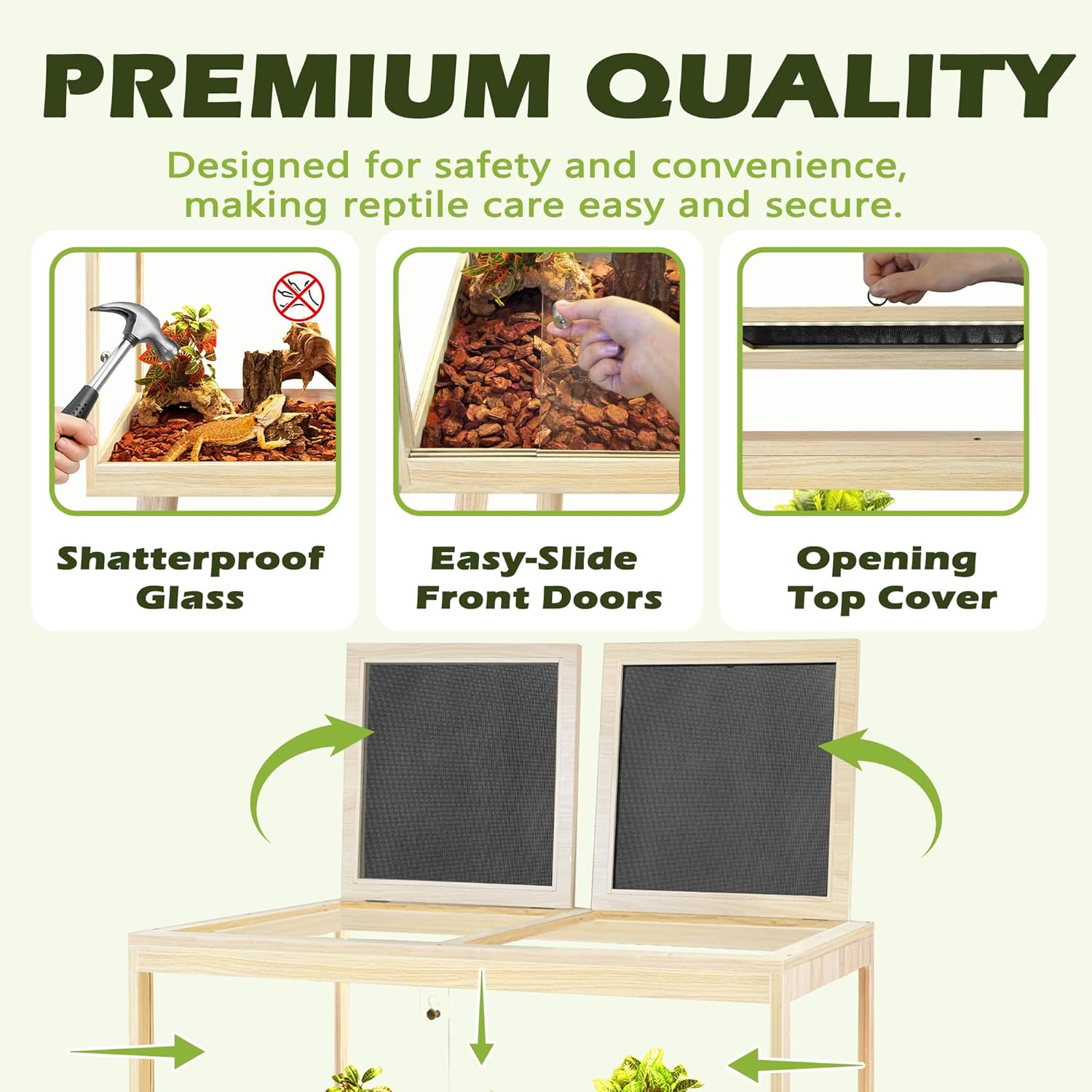 • 【Premium Wooden Reptile Habitat】Give your reptiles a safe and dependable home. Crafted from solid wood core with double sided water-repellent coating, this enclosure is built to last while maintaining a dry and stable environment. Specially designed for terrestrial reptiles (not for aquatic species), it provides a reliable space where your pet can thrive every day.