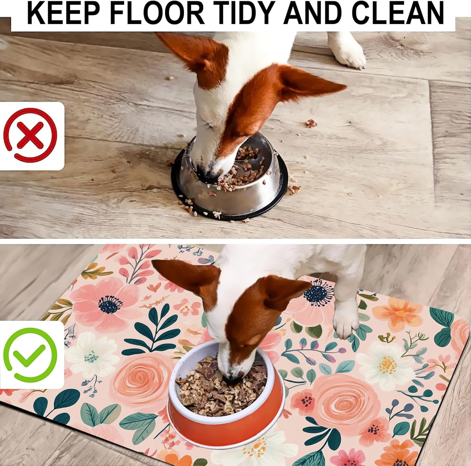 - Super Absorbent & Stain-Resistant:Made with ultra-absorbent fabric, this pet feeding mat quickly soaks up water, milk, or food spills, keeping the area around bowls clean and dry. Say goodbye to wet paw prints and sticky residues—perfect for messy eaters and playful drinkers.