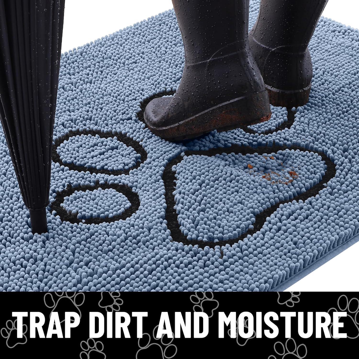 Smiry Dog Door Mat for Muddy Paws, Absorbent Dirt Trapper Non Slip Quick Dry Washable Chenille Mat for Mud Dogs, Entry Rug for Indoor and Outdoor (48x30 Inches, Airy Blue and Black)