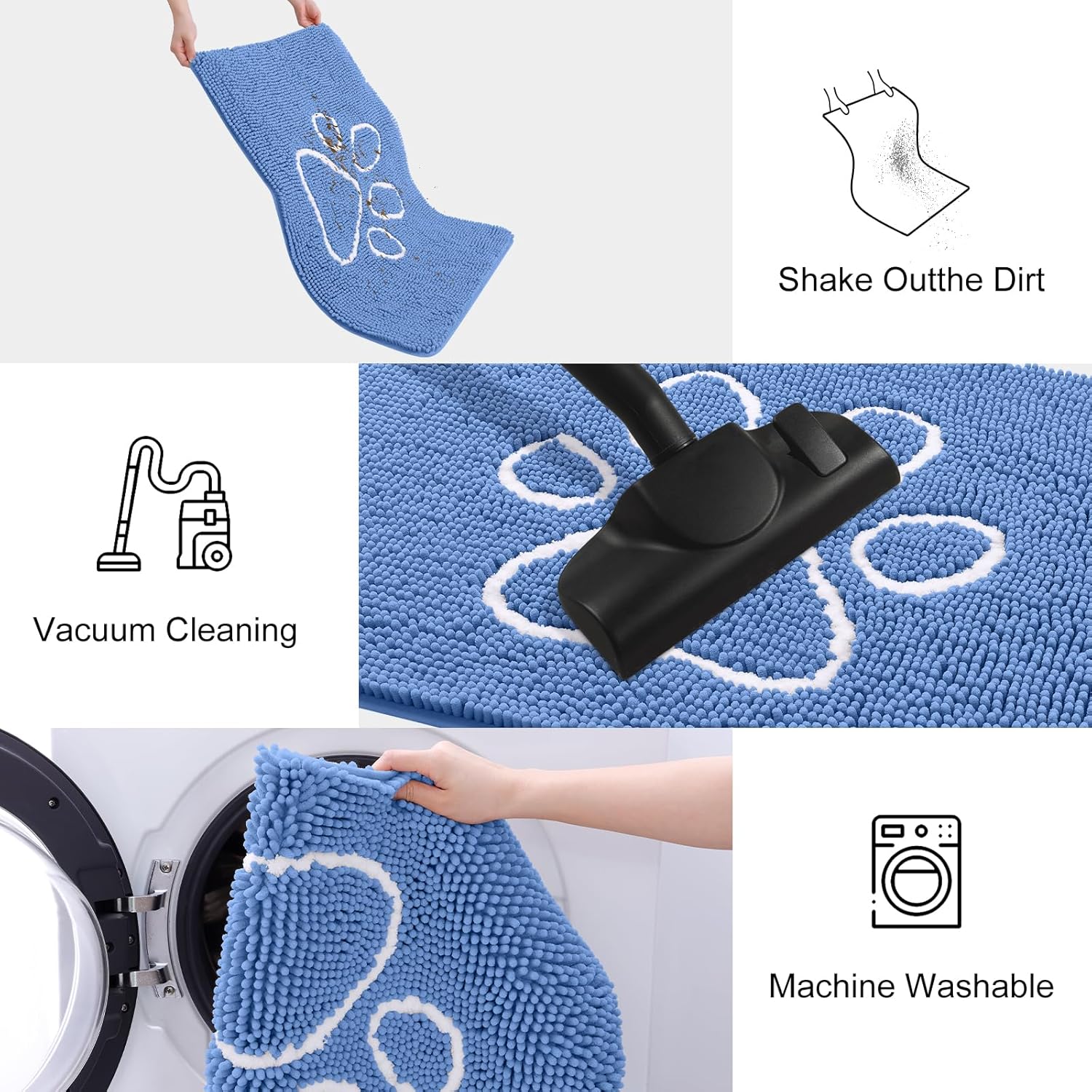 Smiry Dog Door Mat for Muddy Paws, Absorbent Dirt Trapper Non Slip Quick Dry Washable Chenille Mat for Mud Dogs, Entry Rug for Indoor and Outdoor (30x20 Inches, Cornflower Blue)