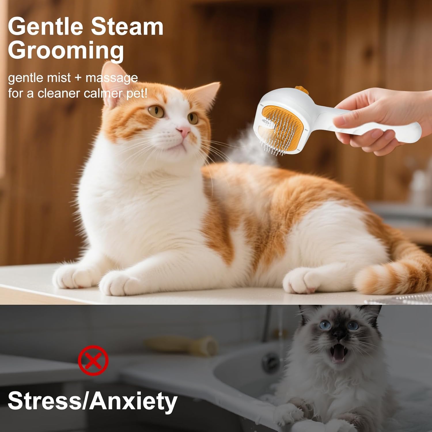 Pet Steam Brush for Dogs and Cats – 3-in-1 Pet Grooming Tool, Spray Portable Design, Suitable for Home and Travel, Ideal for Medium & Long-Haired Pets, Includes 1*Waterless Shampoo, Yellow
