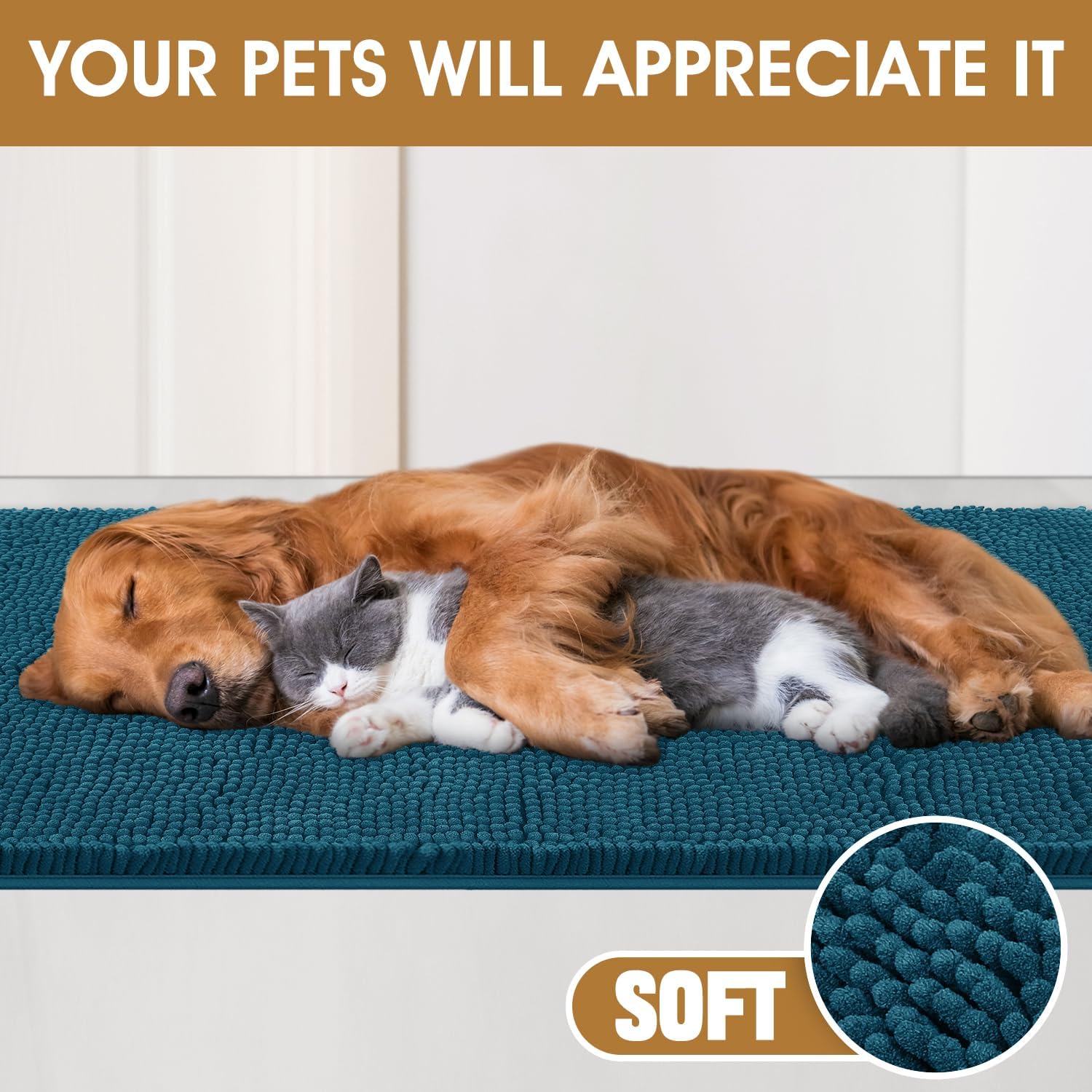 Extra Large Dog Door Mats for Muddy Paws, Chenille Absorbent Dog Mats, Non Slip Heavy Mud Mat for Dogs, Soft Pet Mat for Entryway, Mud Paws, Inside Floor,71" x 25", Teal Blue