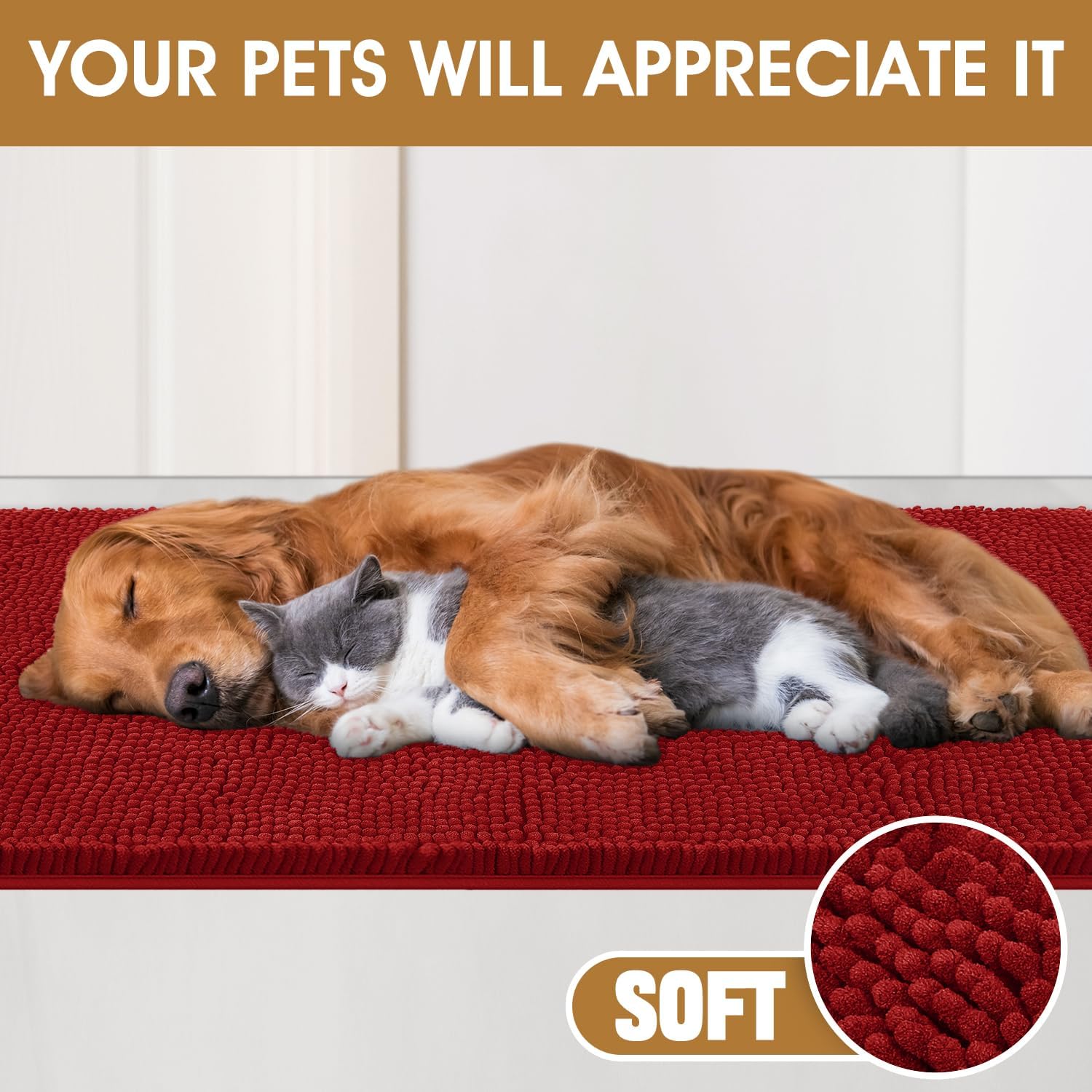 Dog Door Mats for Muddy Paws, Chenille Absorbent Dog Mats, Non Slip Heavy Mud Mat for Dogs, Soft Pet Mat for Entryway, Mud Paws, Inside Floor,48" x 38", Red
