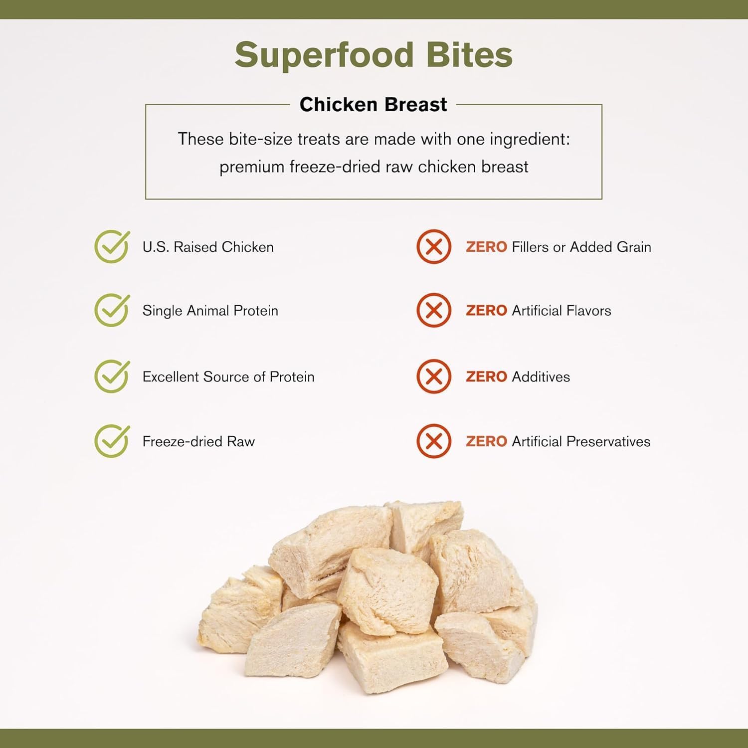 • Superfood Bites are crafted with nutritious, premium grade, USA-raised chicken breast.