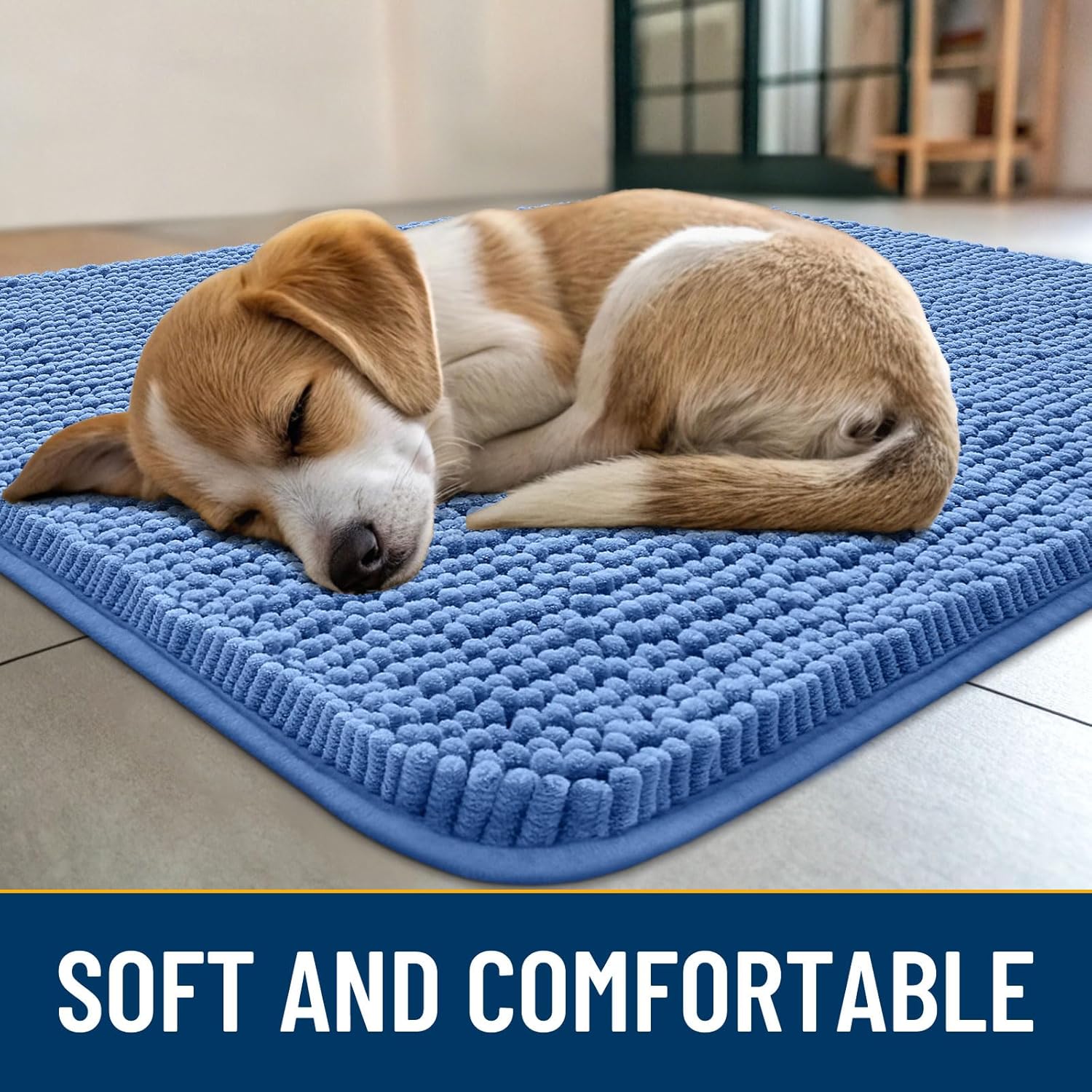 Smiry Dog Door Mat for Muddy Paws 36x24, Absorbs Moisture and Dirt Doormat, Non-Slip Washable Quick Dry Chenille Front Door Mat Indoor Entrance, Entryway Carpet for Inside Floor, Cornflower Blue