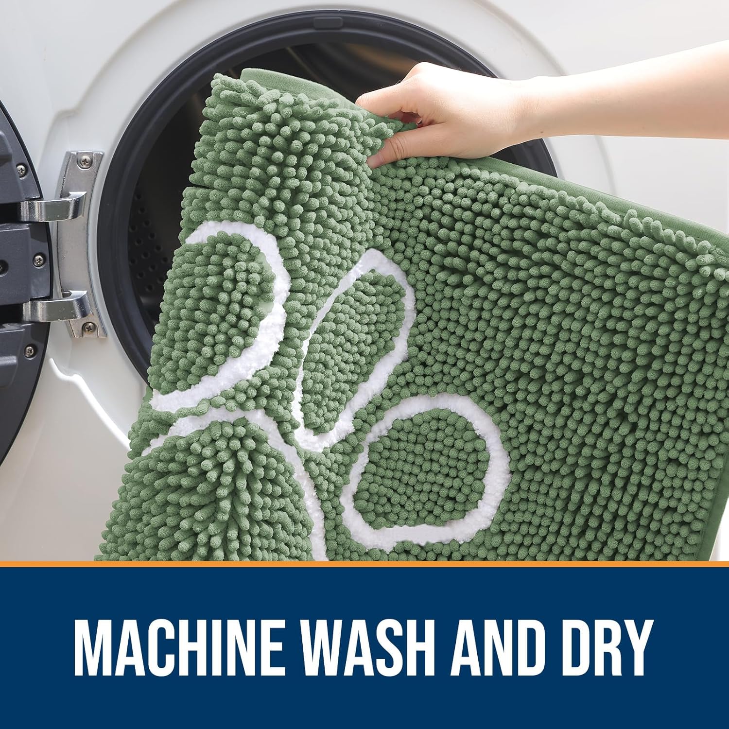 OLANLY Door Mat for Muddy Dog Paws 36x24, Absorbent Chenille Doormat with Paw Print Design, Non-Slip Washable Doormat for Indoor Entryway, Quick-Dry Pet Bed Mats for Dirty Dogs, Olive Green and White