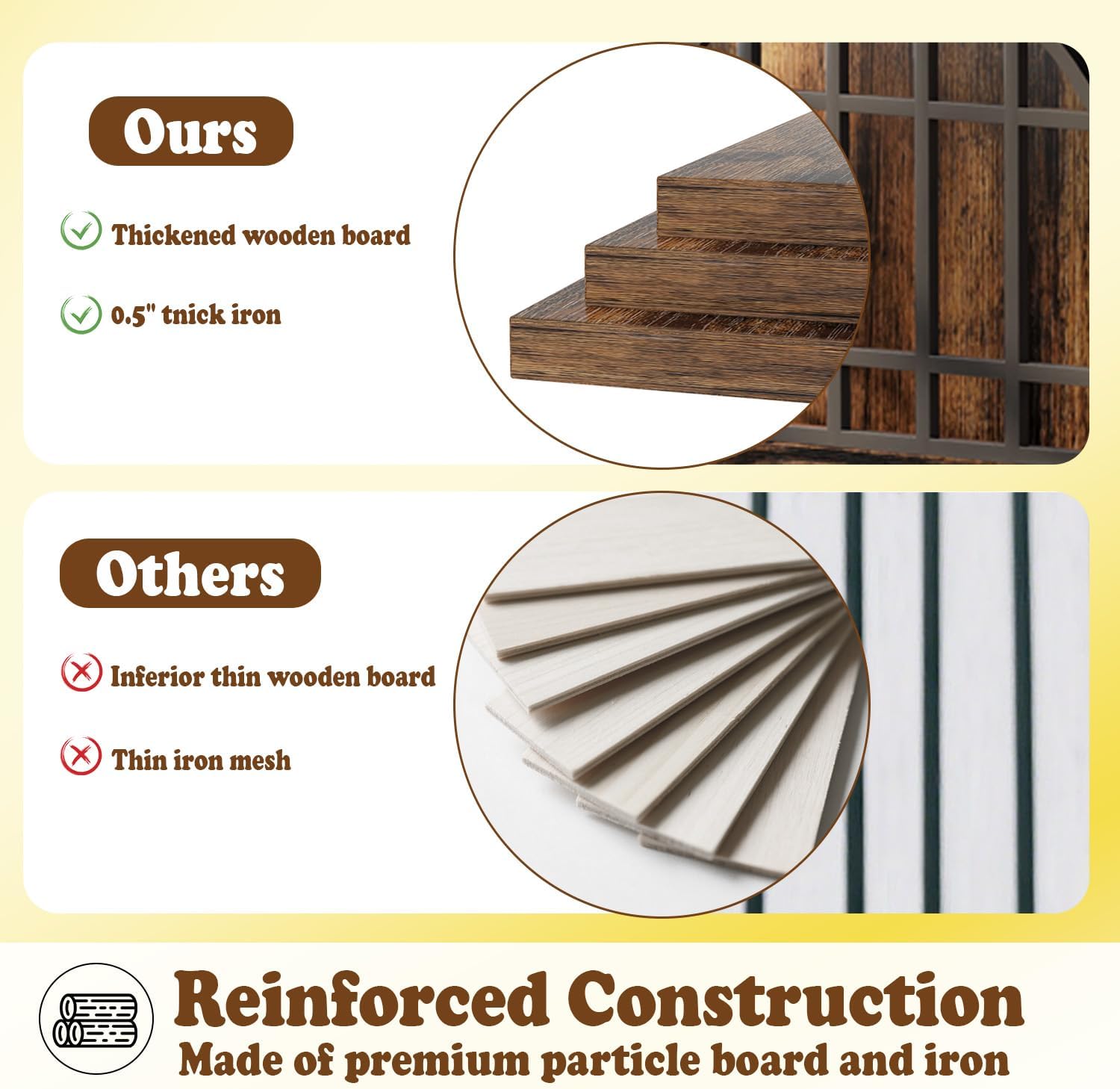 - 【Upgraded Reinforced Structure】 Built with premium particle board and a thickened iron frame, this dog kennel indoor delivers superior stability and durability. Its robust construction resists chewing, scratching, and daily wear—perfect for large breeds. Designed to last, it keeps your dog secure while blending seamlessly with your home decor.
