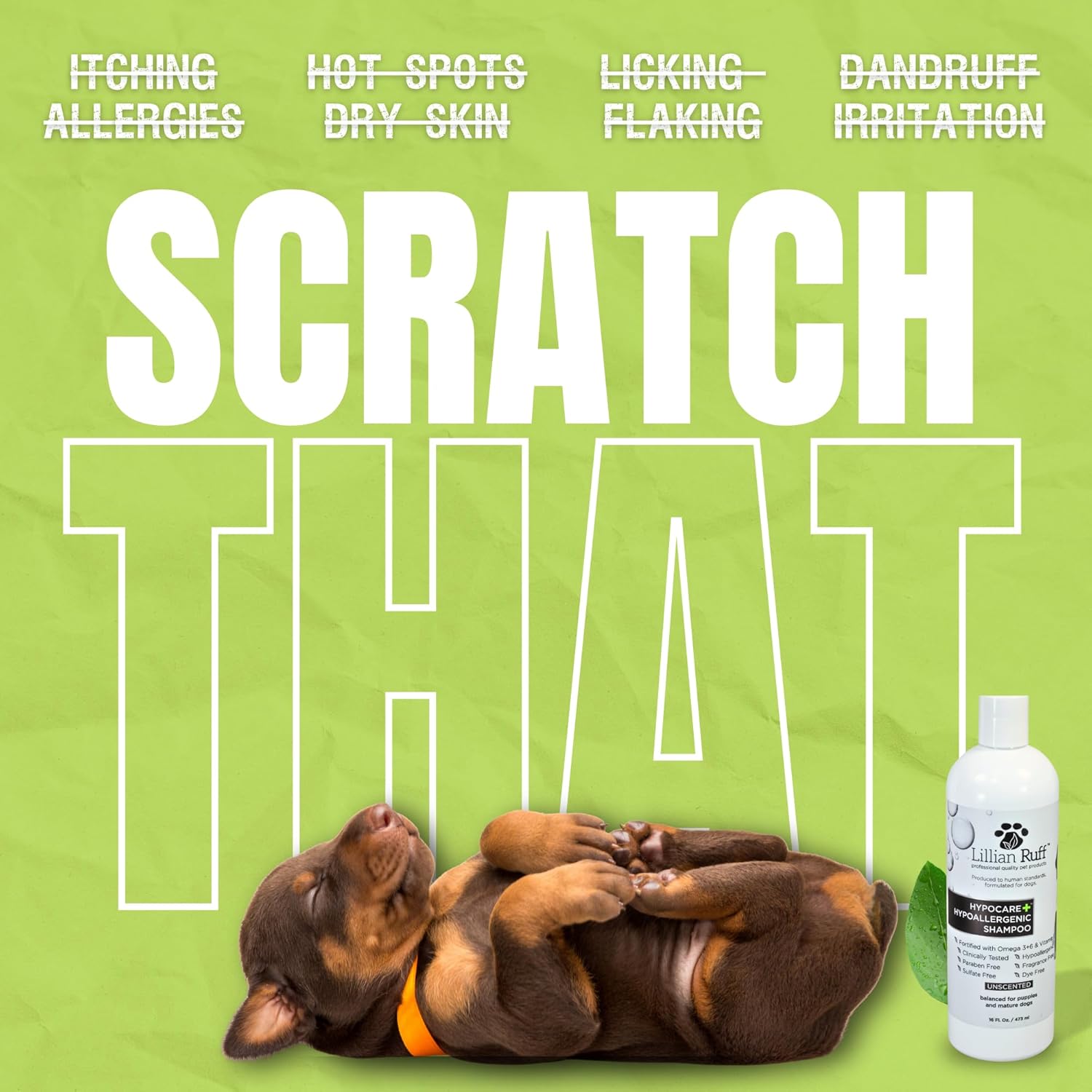 Lillian Ruff Calming Oatmeal Pet Shampoo for Dry Skin & Itch Relief with Aloe & Hydrating Essential Oils - Replenish Moisture & Deodorize - Tearless Dog Shampoo for Normal/Sensitive Skin (Hypocare+)
