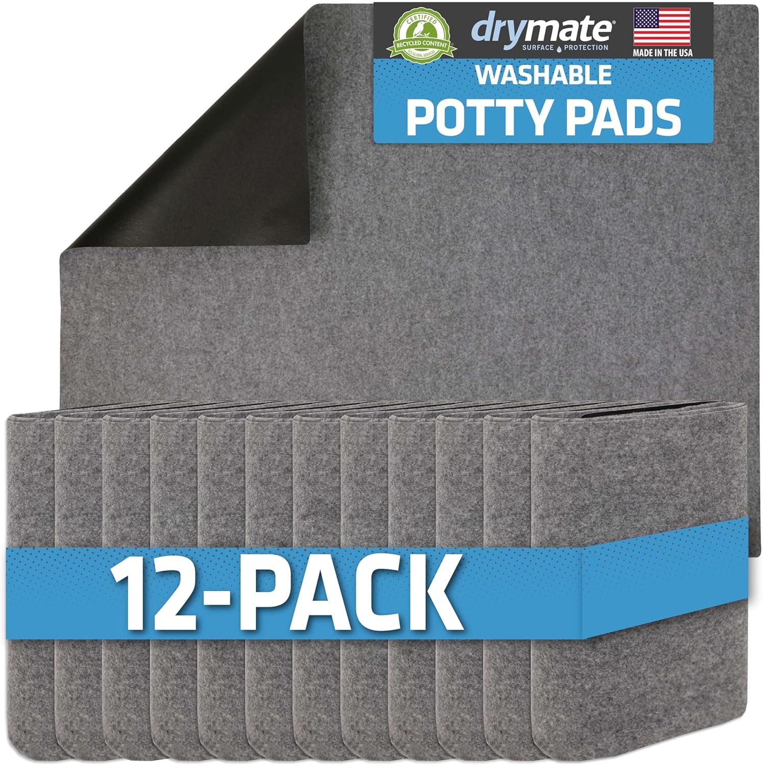 Drymate 12-Pack Washable Pee Pads for Dogs (29x36), Waterproof, Absorbent, Slip-Resistant, Reusable Pet Training Potty Puppy Mats, Housebreaking, Incontinence Bed Pads, Crate, Kennel (USA Made)