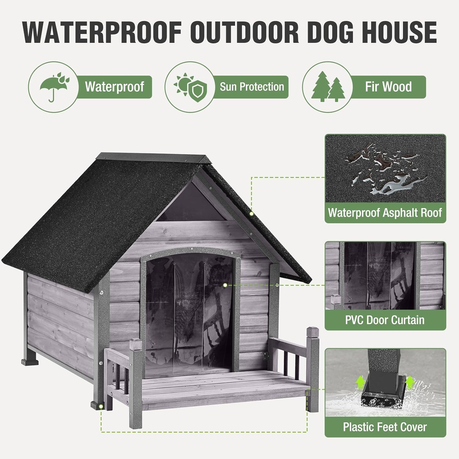 - Waterproof and Sun Protection Design: This outdoor dog house features a high-quality waterproof asphalt roof, effectively preventing rainwater penetration while providing excellent sun protection. Whether it's rainy or sunny, your beloved pet can rest comfortably in a cozy environment.