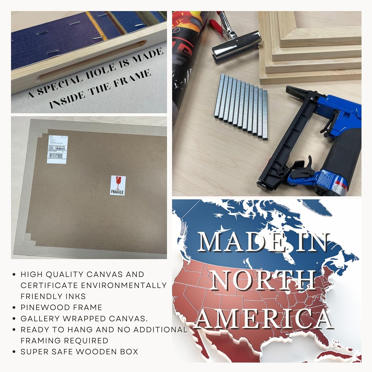 • ✅ Ready to Hang & Enjoy: Your canvas is delivered ready for immediate display on a solid 1-inch pinewood frame. With a discreet, built-in hanger, you can unbox and adorn your wall in minutes—no assembly required.